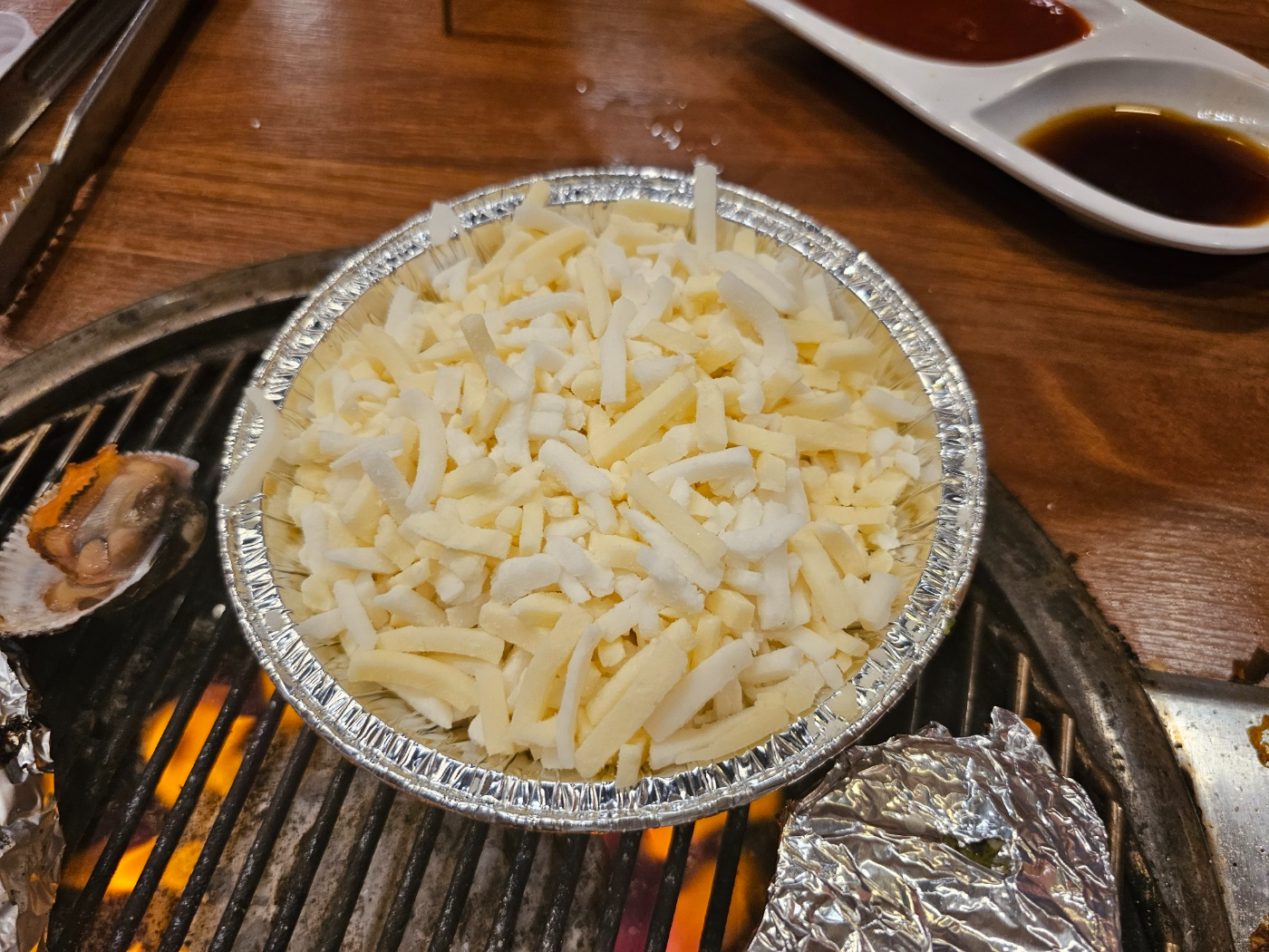 가리비부터 불판 위로 올립니다.